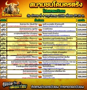 โปรแกรมวัวชน สนามกีฬาชนโคนครตรัง วันที่ 4 พฤศจิกายน 2568