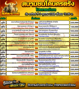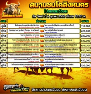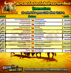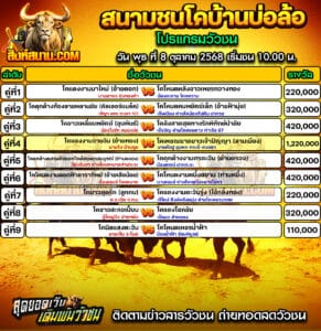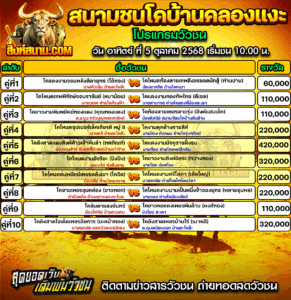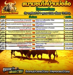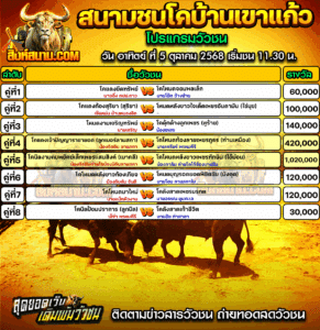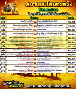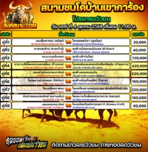 โปรแกรมวัวชน สนามกีฬาชนโคเขาการ้อง วันที่ 13 เมษายน 2568