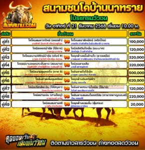 โปรแกรมวัวชน สนามกีฬาชนโคนครตรัง วันที่ 5 ตุลาคม 2568