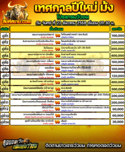 โปรแกรมวัวชน สนามกีฬาชนโคท่าศาลา วันจันทร์ ที่ 22 ธันวาคม 2568