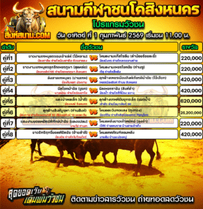 โปรแกรมวัวชน สนามกีฬาชนโคสิงหนคร วัน อาทิตย์ ที่ 1 กุมภาพันธ์ 2569