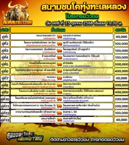 โปรแกรมวัวชน สนามกีฬาชนโคทุ่งทะเลหลวง วันที่ 25 ตุลาคม 2568